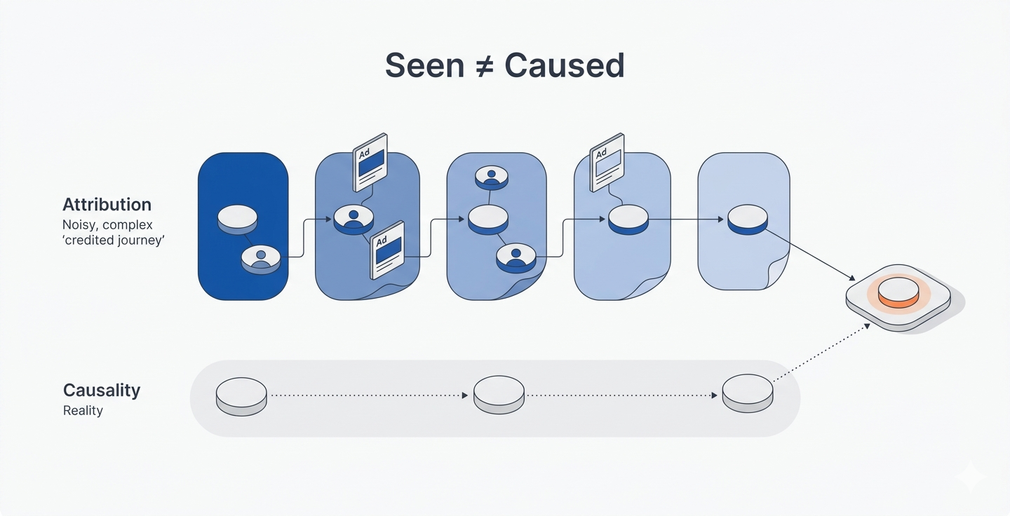 This is not a flaw in any specific attribution model. It is a structural limitation of the entire credit-assignment approach. Attribution was designed to distribute credit across a journey, not to measure whether the journey would have ended differently without specific touchpoints. The distinction between these two objectives is the entire gap between attributed performance and incremental performance.